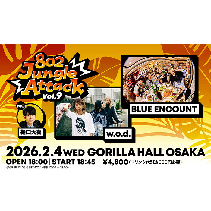FM802とライブハウスGORILLA HALL、イープラスで取り組むプロジェクトとして毎週月曜-金曜、23:48からDJも週替わりでお届けしている番組『MUSIC Play-STANDARD』。この番組と連動する形で不定期開催されているオムニバスイベント『802 Jungle Attack』の第9弾!を開催します!