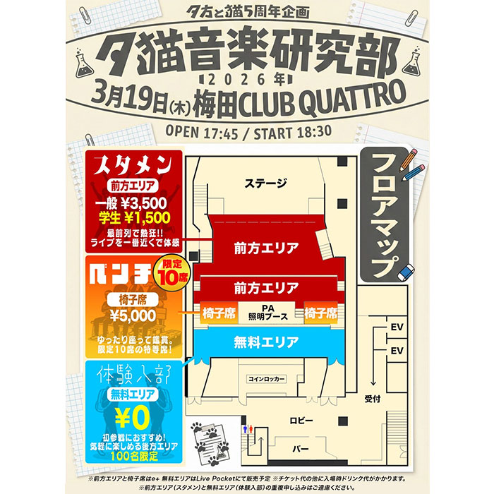 一般¥3,500- / 学割¥1,500- / 後方無料エリア¥0- / 椅子指定席¥5,000-