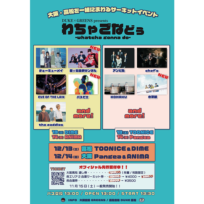 12/13(土)高松ライブハウス2会場、12/14(日)大阪ライブハウス2会場でのサーキットイベントです。