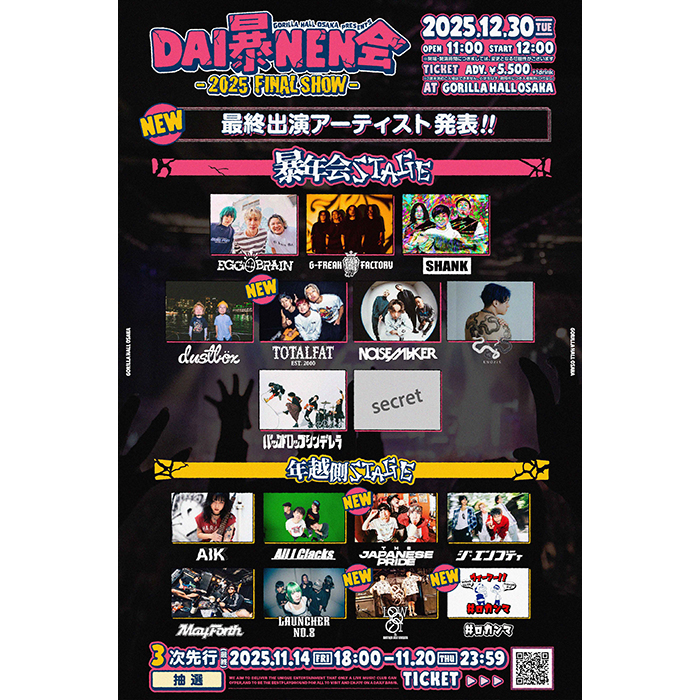 - 2025年12月30日(火) OPEN 11:00 / START 12:00