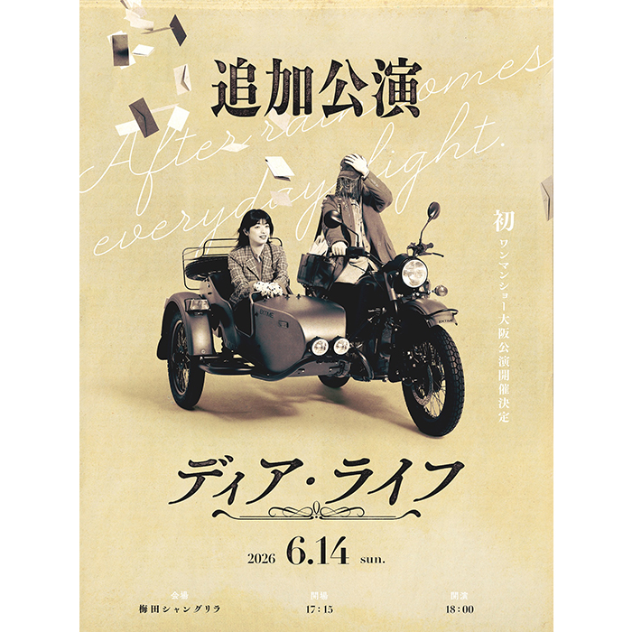 2026年6月14日(日) OPEN 17:15 / START 18:00 梅田シャングリラ ●前売料金 ¥5000(スタンディング) ※整理番号順の入場になります。※ドリンク代金別途要 --- GREENS 06-6882-1224(平日12:00~18:00) https://www.greens-corp.co.jp/