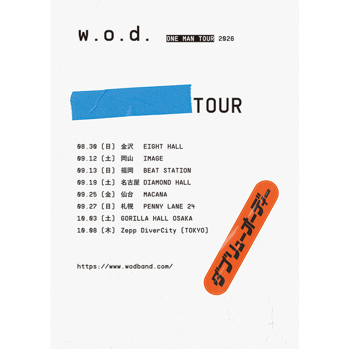 『w.o.d. Major 1st Album 「あい」』2024年10月23日(水) リリース ■通常盤(初回仕様)(CDのみ)SECL-3152 \3,300 ■完全生産限定盤(CD+BD+ポスター)SECL-3150~3151 \9,800 [収録曲] 01. My Generation 02. STARS 03. ネックレス 04. 喜劇 05. あばく 06. Take It Easy 07. 陽炎 08. 2024 09. あなたの犬になる 10. エンドレス・リピート